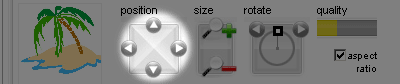 - Position: Select up/down, left/right. Or drag selected text around the design area by mouse.